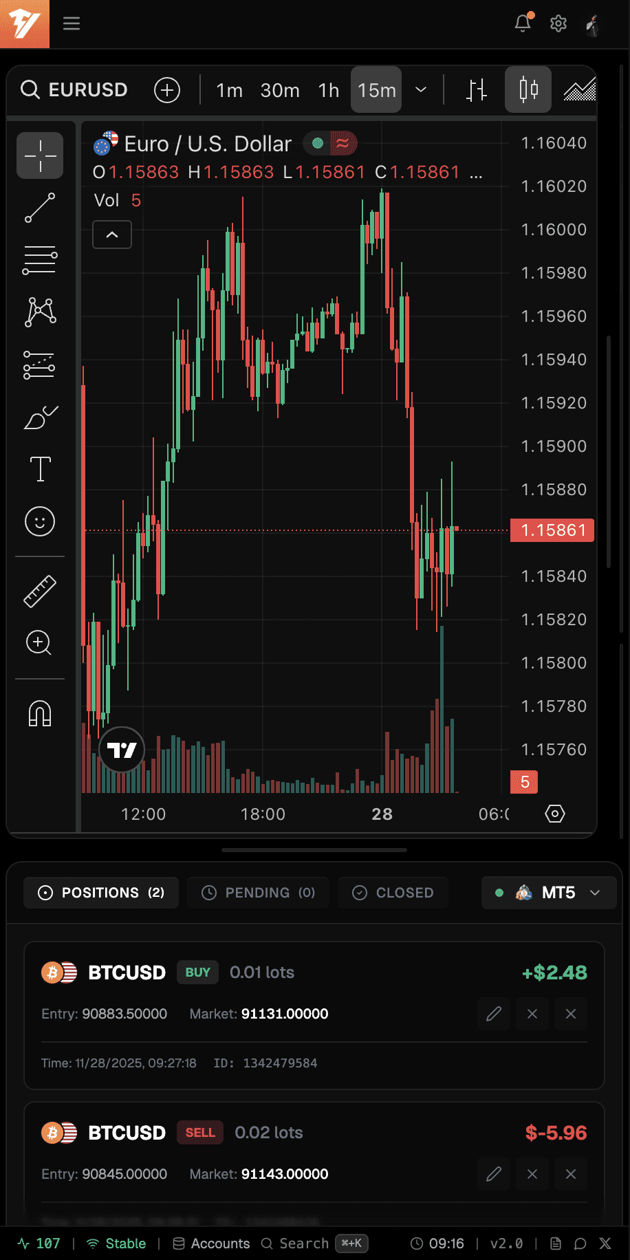 Yes, automatically. EURUSD on TradingView becomes the correct symbol on your MT4 broker (EURUSD.fx), MT5 broker (EURUSDm), and TradeLocker broker (EURUSD.fb)—automatically. No manual mapping required.